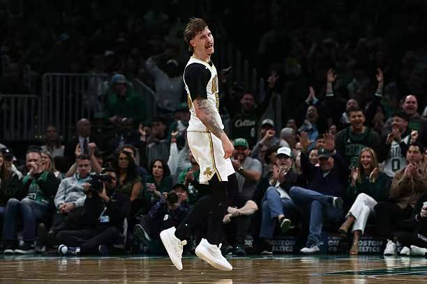 本场比赛中,凯尔特人的先发小前锋贝勒-沙伊尔曼(Baylor Scheierman)的表现算得上是令人刮目相看。沙伊尔曼全场出场38分48秒,投篮20中8,三分线外14中6,罚球8中8,得到了全场最高分30分外加7篮板7助攻2抢断1盖帽的准三双数据,还有3次失误和3次犯规,正负值为+15。值得一提的是,30分和7助攻都刷新了沙伊尔曼NBA生涯的个人单场新高,本场比赛也是他在NBA赛场上的最强之战。沙伊尔曼在进攻端展现出了自己超强的投射能力,命中了大量的外线投篮,而且很多三分都是超远出手。沙伊尔曼也展现出了不俗的传球能力和组织能力,同样能够在这方面起到决定性的作用。除此之外,沙伊尔曼在防守端的表现也是可圈可点的,同样是能够发挥出自己在这方面的才能。总体来看,沙伊尔曼算是展现出了攻守兼备的水准,发挥出了自己在各方面的特点,展现出了后场核心应有的水准,为球队的这场胜利做出了巨大的贡献。